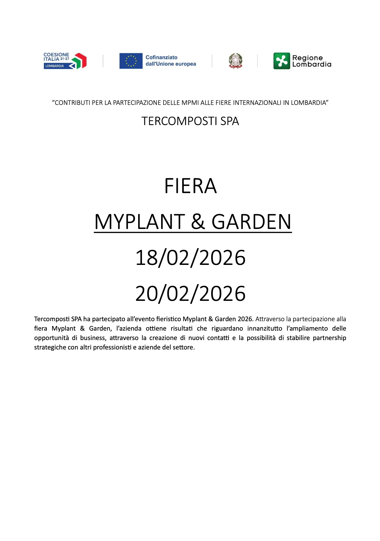 Anche quest’anno Tercomposti sarà presente a MyPlant & Garden 2026, il più importante salone internazionale in Italia dedicato all’orto-florovivaismo, al garden, al paesaggio e alle tecnologie per il verde.